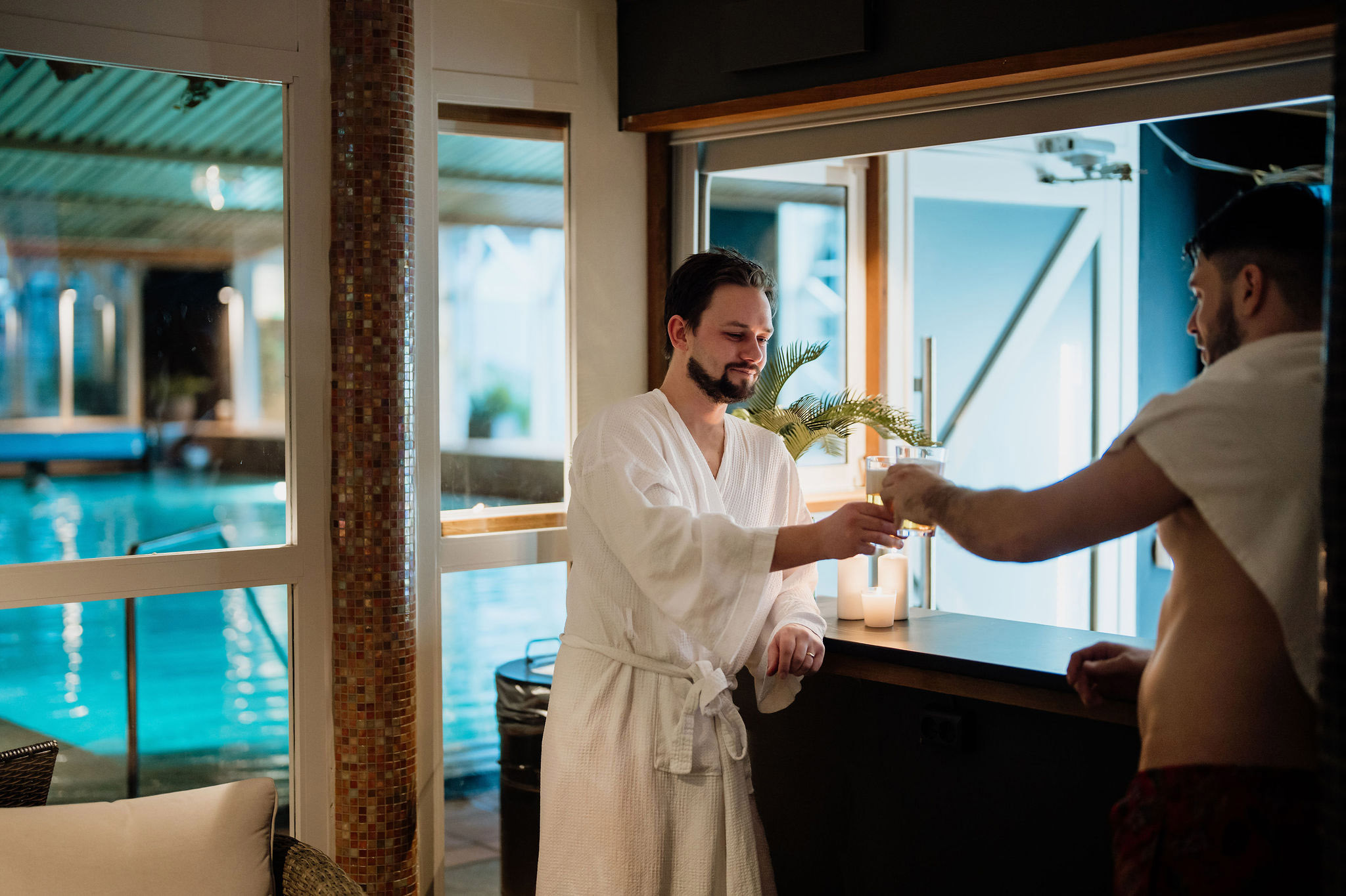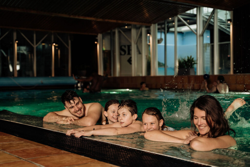 Ett med et stort innendørsbasseng og badstue for barn. Et stort spa med basseng, badstue, avslapningsrom, badstue og mye mer for voksne. Vi har også utendørs boblebad med utsikt over havet.